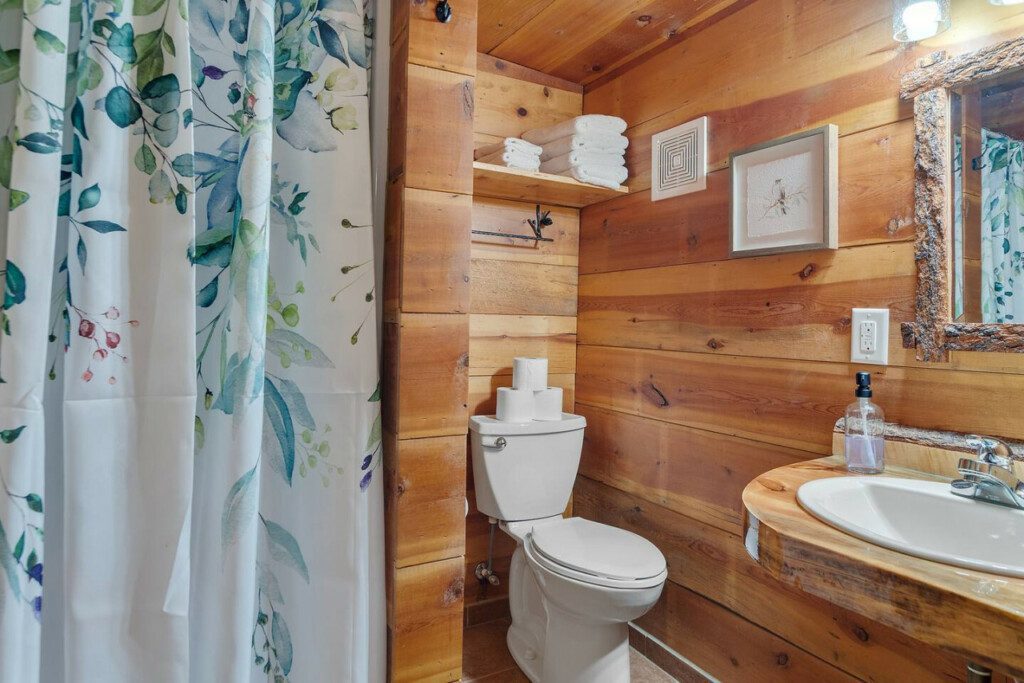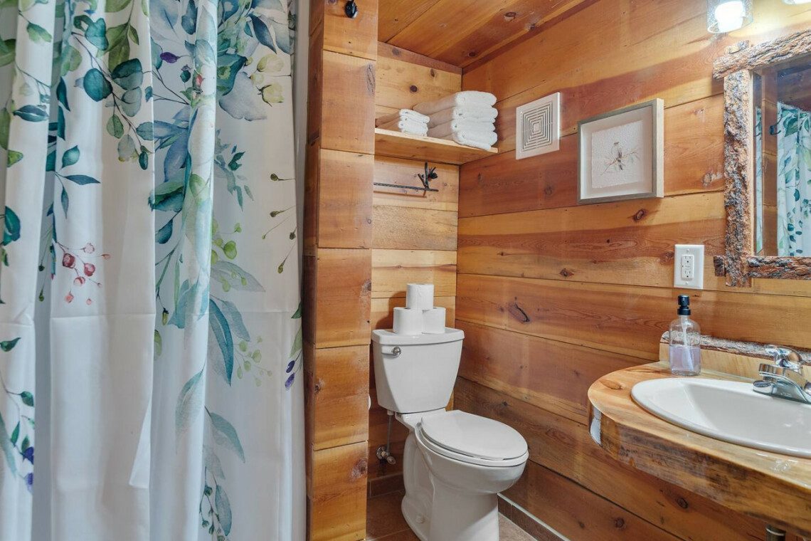 The cabin is equipped with a hair dryer, air conditioning, and heating to ensure a comfortable stay. You’ll enjoy the luxury of premium 100% cotton sheets, soft and thick bath towels, and complimentary toiletries. Upon arrival, we provide 3 rolls of toilet paper, 1 roll of paper towels, and a set of shampoo, conditioner, and a bar of soap.