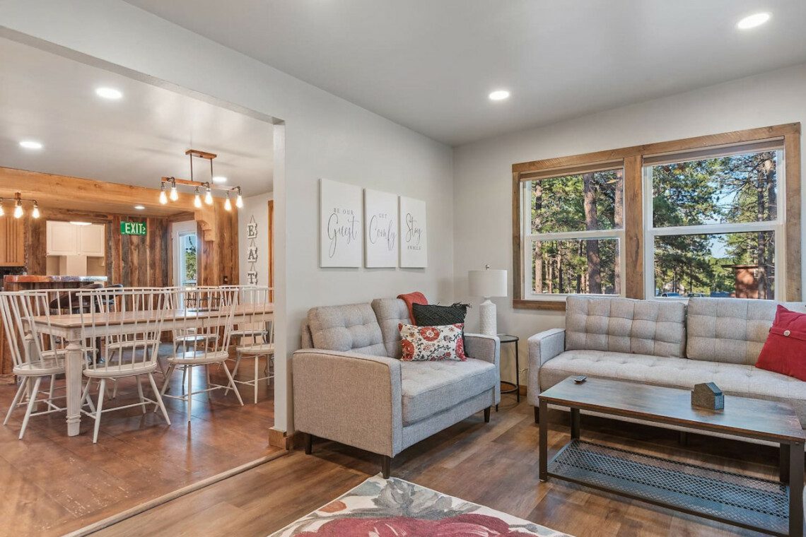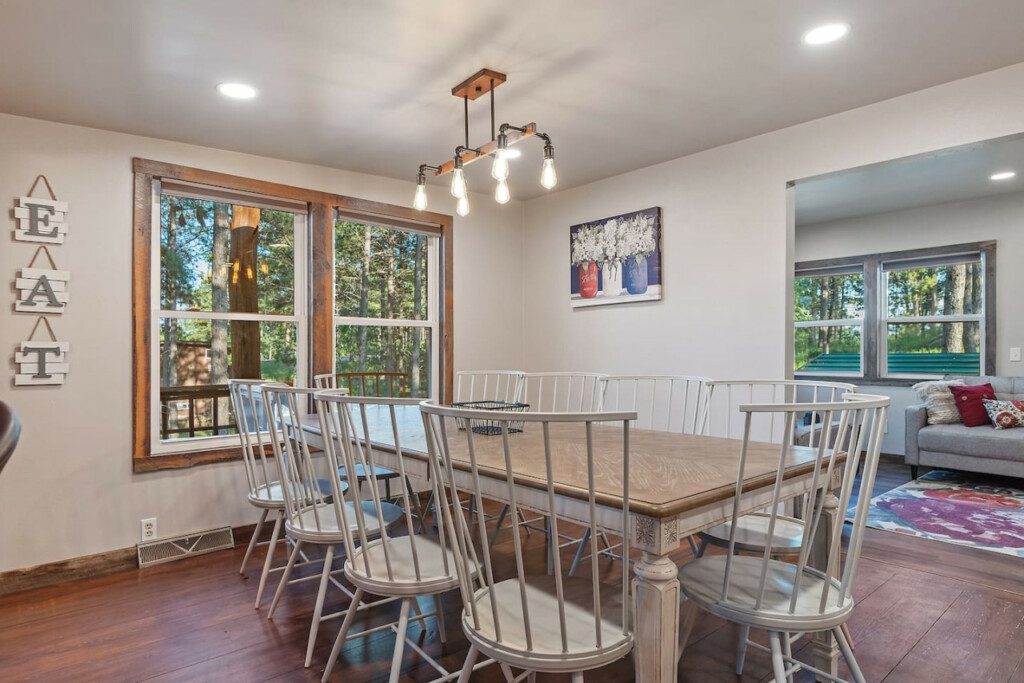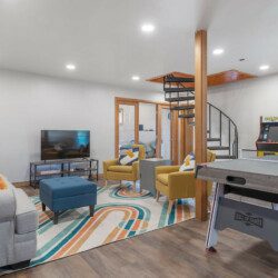 Immerse yourself in the perfect blend of luxury and nature’s beauty. Our haven is equipped with fantastic features like a Massive Deck, Game Room, Firepit, and all the comforts of a resort-style getaway. Enjoy your stay in five beautifully furnished bedrooms, striking the right balance between luxury and relaxation.