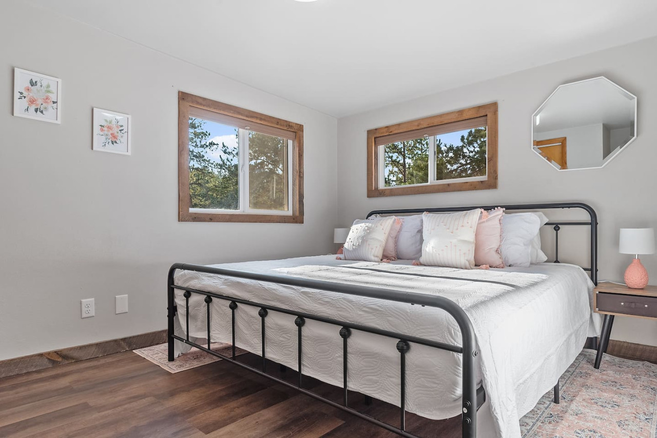 Nestled among the Ponderosa Pines, our cabin offers breathtaking views of the Needle Spires, providing a truly unique and relaxing getaway. Thoughtfully designed for a home-like feel, our cabins provide all you need for a comfortable stay. Just 5 miles from downtown Custer and conveniently located within minutes’ drive to Mount Rushmore, Crazy Horse, Custer State Park, and other major tourist attractions, it’s the perfect base to explore the beauty of the Black Hills!