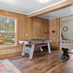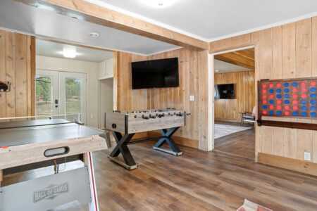 Set off on a delightful journey at our charming cabin retreat, where you’ll find the perfect mix of outdoor serenity and indoor amusement. This captivating hideaway boasts three bedrooms, each featuring a cozy queen bed, while the living room offers an additional queen sleeper sofa for enhanced comfort and a Pack ‘n Play. Plus, there’s a game room for added entertainment. Immerse yourself in the picturesque surroundings, ensuring an unforgettable fusion of relaxation and fun. Encounter wildlife such as turkey, deer, and fishing opportunities, deepening your bond with nature. Moreover, delight in the warmth of an outdoor firepit, rejuvenate in the communal sauna, and indulge in the soothing comfort of the hot tub, exclusively available for guests, elevating the comfort and tranquility of your retreat.